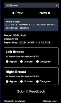 Through the delivery of this viewer, ODELIA provides a shared research platform that supports collaborative evaluation of AI models for breast MRI across multiple European partner institutions.